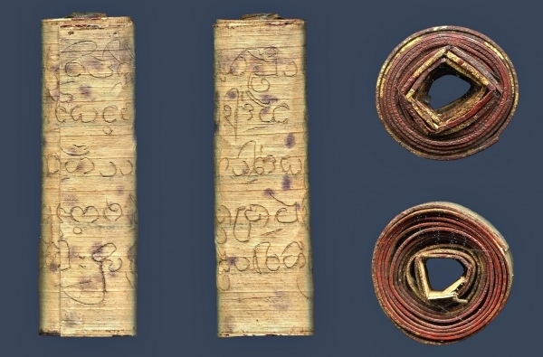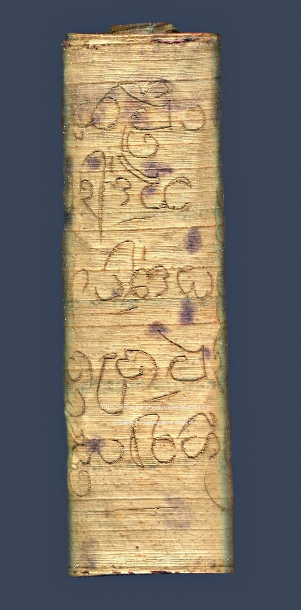 ครูบาวัง วัดบ้านเด่น ตะกรุดใบลาน จารเหล็กลงหมิ่นหม้อ (เขม่าดำก้นหม้อ) ปี ๒๔๙๘ จ.ตาก