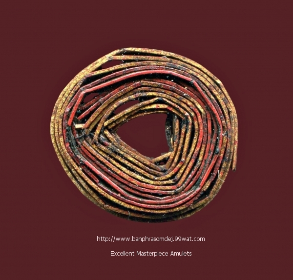 | ครูบาวัง วัดบ้านเด่น ตะกรุดใบลาน จารเหล็กลงหมิ่นหม้อ (เขม่าดำก้นหม้อ) ปี ๒๔๙๘ จ.ตาก | |||||||||||||||